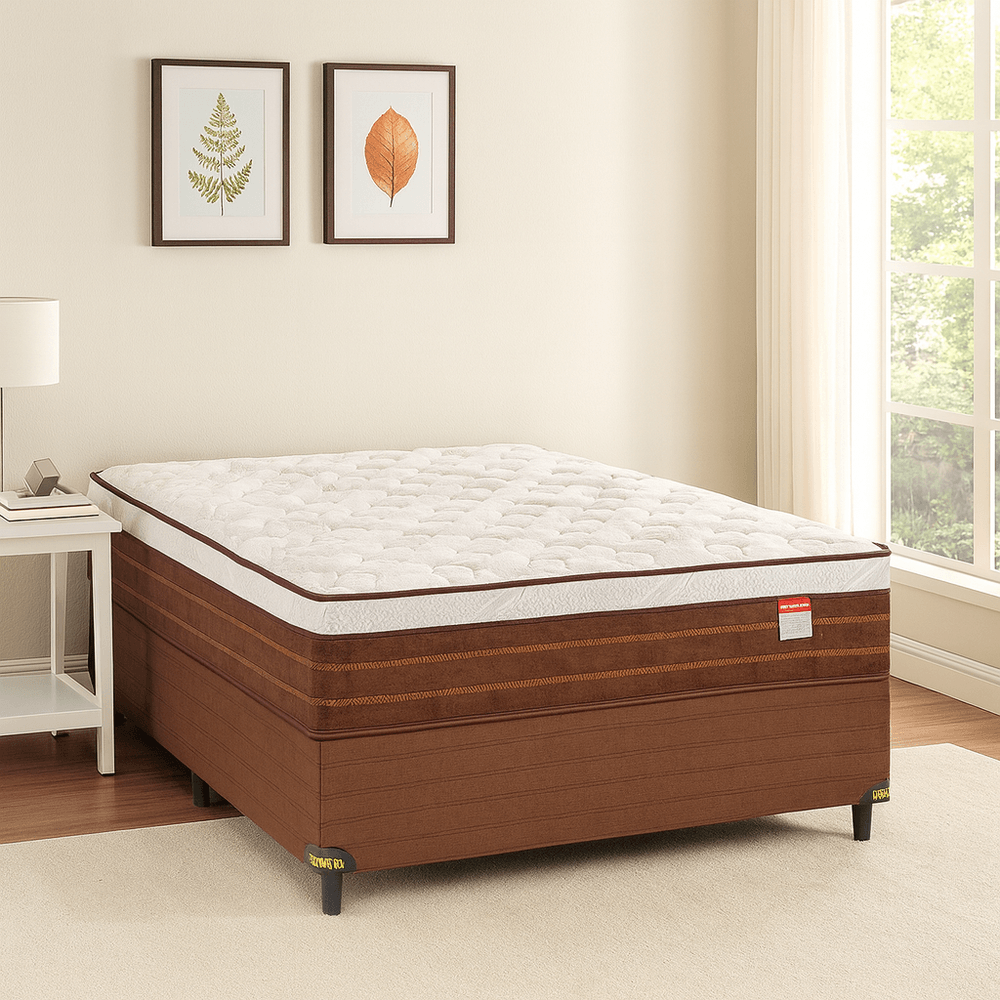 O Conjunto Intense é perfeito para quem prefere um suporte mais firme. O molejo Miralastic Pro associado à espuma convencional de poliuretano possibilita a perfeita distribuição de peso, alinhamento corporal e alívio dos pontos de pressão. Acompanha base produzida pela Reconflex com madeira Pinus e Eucalipto oriundas de reflorestamento, oferecendo maior segurança para o usuário e o Meio Ambiente. O tecido antiderrapante no tampo, os pés em madeira e as cantoneiras para proteção contribuem para um design elegante, maior qualidade e durabilidade do box.